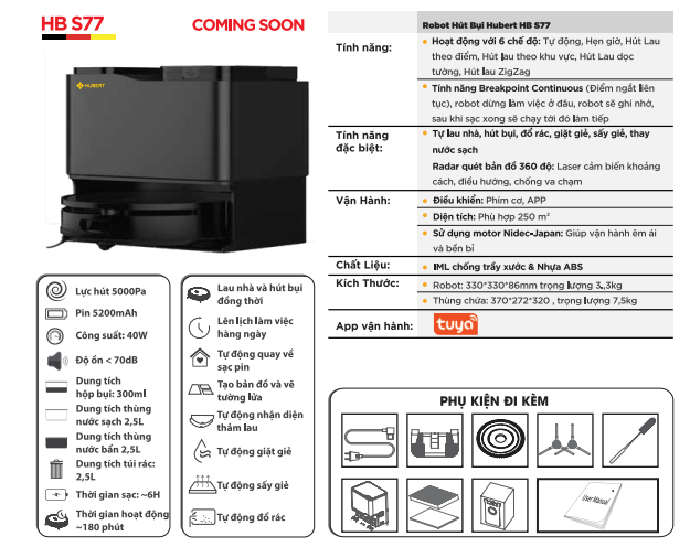 ROBOT HÚT BỤI HUBERT HB S77 được phân phối chính hãng bới Thiết Bị Ngoại Nhập, giao hàng nhanh, bảo hành và bảo trì tại nhà nhanh chóng.