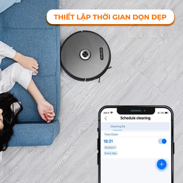 Thân máy được chế tạo từ nhựa ABS cao cấp kết hợp bề mặt IML chống trầy xước, mang đến vẻ ngoài sang trọng và khả năng chống mài mòn tuyệt vời. Với kích thước gọn gàng 330×330×86 mm và trọng lượng chỉ 3,3 kg, robot dễ dàng len lỏi vào gầm bàn, gầm ghế để dọn dẹp triệt để. - Điều khiển thông minh qua ứng dụng Tuya