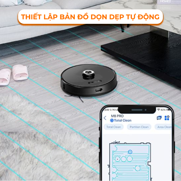 Robot được tích hợp radar quét bản đồ 360° kết hợp cảm biến Laser tiên tiến, giúp định vị chính xác không gian và xây dựng bản đồ di chuyển thông minh. Hệ thống này không chỉ giúp HB S77 di chuyển khoa học, tránh va chạm, mà còn tối ưu hóa lộ trình làm việc, tăng tốc độ dọn dẹp và tiết kiệm năng lượng.