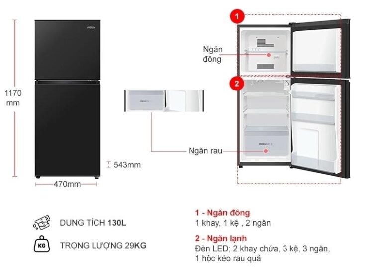 TỦ LẠNH AQUA 130 LÍT AQR-T160FA(BS)