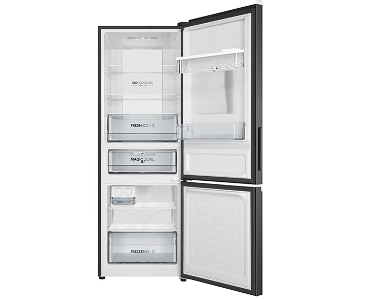 Thiết kế ngăn đá dưới giúp ngăn mát nằm ở tầm mắt, thuận tiện cho việc lấy thực phẩm thường xuyên. Khay kính cường lực có khả năng chịu tải lớn, linh hoạt tháo lắp và dễ vệ sinh. Với dung tích 292 lít, tủ phù hợp cho gia đình từ 2–3 thành viên, đáp ứng tốt nhu cầu sử dụng hàng ngày.