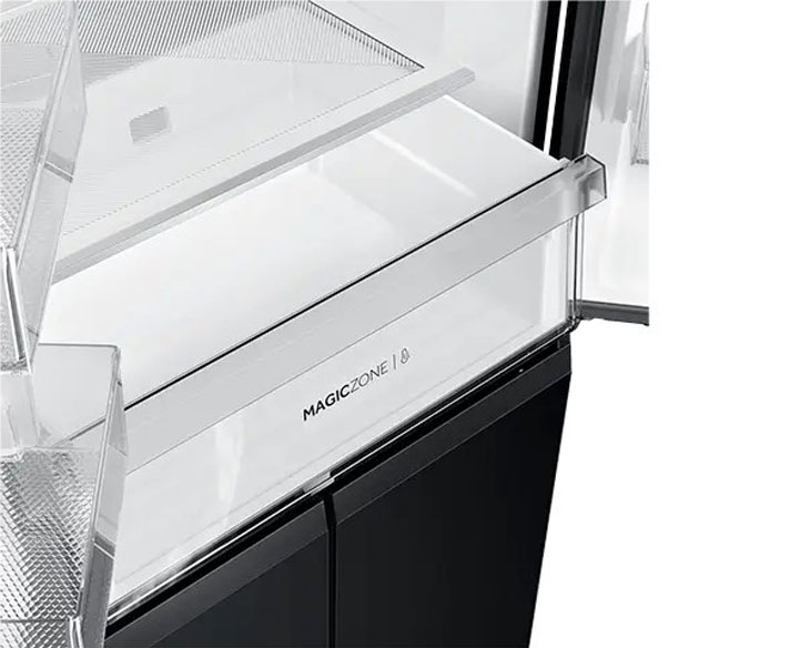 Ngăn Magic Zone cho phép tùy chỉnh 3 mức nhiệt độ từ 0,2°C đến 4°C, phù hợp nhiều mục đích bảo quản khác nhau. Người dùng có thể dùng để rã đông mềm, bảo quản thịt cá ngắn ngày hoặc làm lạnh nhanh đồ uống. Thiết kế này giúp hạn chế lẫn mùi và giữ thực phẩm tươi ngon hiệu quả.