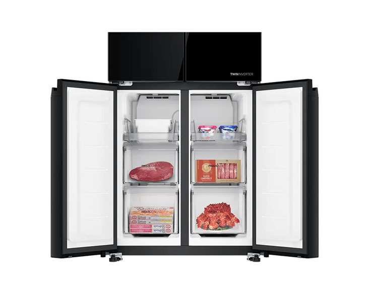 - Công nghệ Twin Inverter là điểm cộng lớn khi giúp tủ vận hành êm ái, ổn định nhiệt độ và tiết kiệm điện hiệu quả trong quá trình sử dụng lâu dài. Bên cạnh đó, công nghệ kháng khuẩn khử mùi DEO Fresh góp phần loại bỏ mùi hôi, hạn chế vi khuẩn phát triển, mang lại không gian lưu trữ sạch sẽ và an toàn cho thực phẩm.