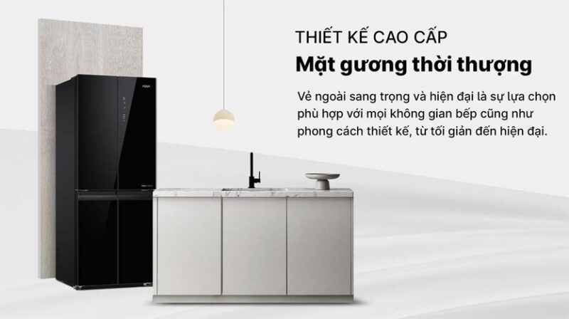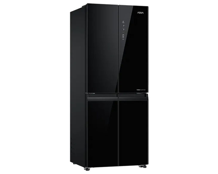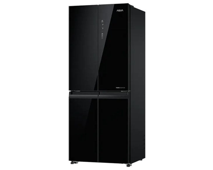 - Tủ lạnh Aqua Inverter 410 lít AQR-M466XA(GB) gây ấn tượng với thiết kế Multi Door 4 cánh hiện đại, mặt kính đen tráng gương sang trọng, dễ lau chùi và bền bỉ theo thời gian. Kiểu dáng gọn gàng với bề rộng chỉ 70 cm giúp sản phẩm dễ dàng bố trí trong nhiều không gian bếp, kể cả khu vực có diện tích hạn chế, vẫn đảm bảo tính thẩm mỹ cao.