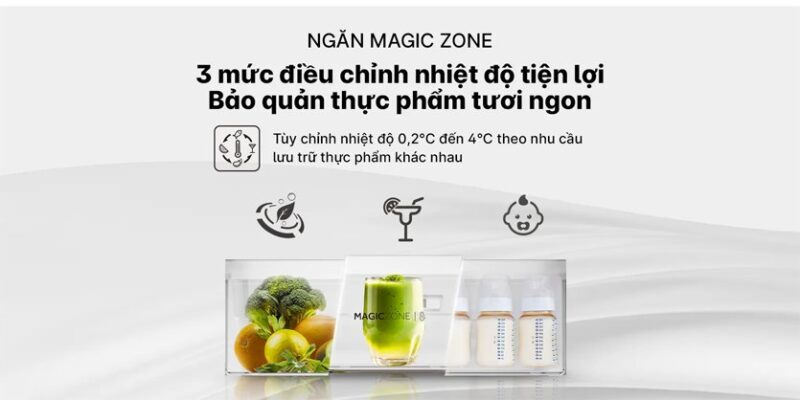 - Ngăn Magic Zone 3 mức điều chỉnh nhiệt độ