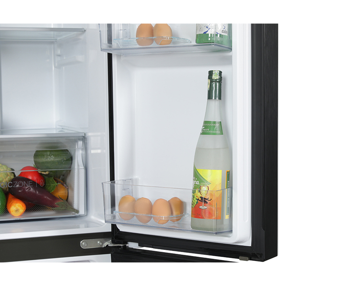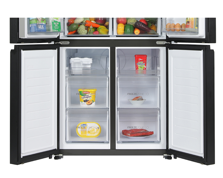 Ngăn lạnh 318 lít và ngăn đá 151 lít được bố trí nhiều hộc riêng biệt, giúp sắp xếp thực phẩm gọn gàng và tránh lẫn mùi. Khay kính chịu lực có thể điều chỉnh độ cao linh hoạt, dễ tháo lắp và vệ sinh. Đi kèm khay đá xoay tiện lợi, đáp ứng tốt nhu cầu sử dụng hằng ngày.