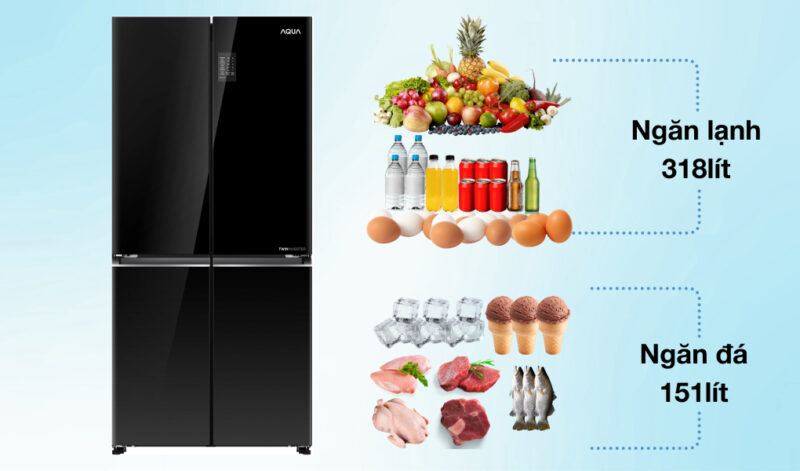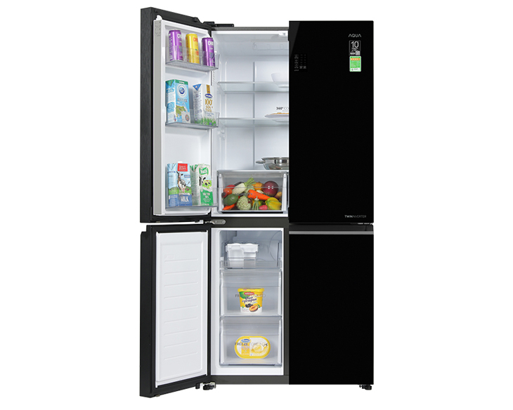 Tủ lạnh Aqua AQR-M536XA(GB) sở hữu thiết kế Multi Door 4 cửa độc lập, giúp phân chia không gian lưu trữ khoa học và hạn chế thất thoát hơi lạnh. Mặt kính màu đen cao cấp mang lại vẻ ngoài hiện đại, sang trọng và dễ lau chùi. Dung tích 469 lít phù hợp cho gia đình từ 4–5 thành viên.