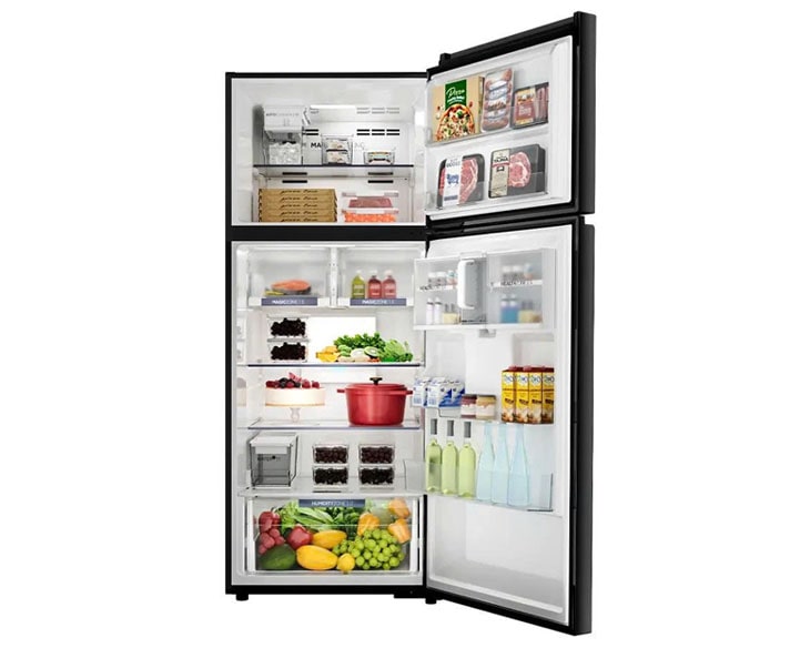 Dung tích 480 lít đáp ứng tốt nhu cầu lưu trữ thực phẩm cho gia đình đông người. Không gian bên trong được bố trí khoa học, phù hợp nhiều loại thực phẩm từ đồ tươi sống, đông lạnh đến chai lọ dung tích lớn. Nhờ đó, người dùng dễ dàng sắp xếp và quản lý thực phẩm hằng ngày.