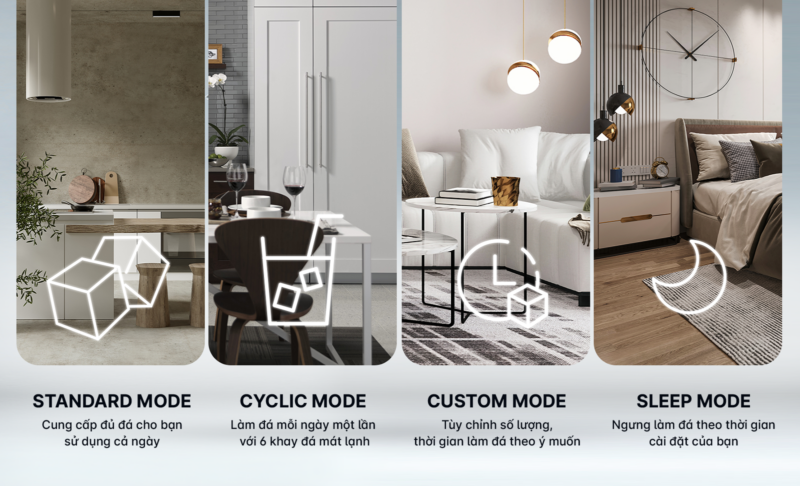 - Hệ thống làm đá tự động thông minh 4 chế độ