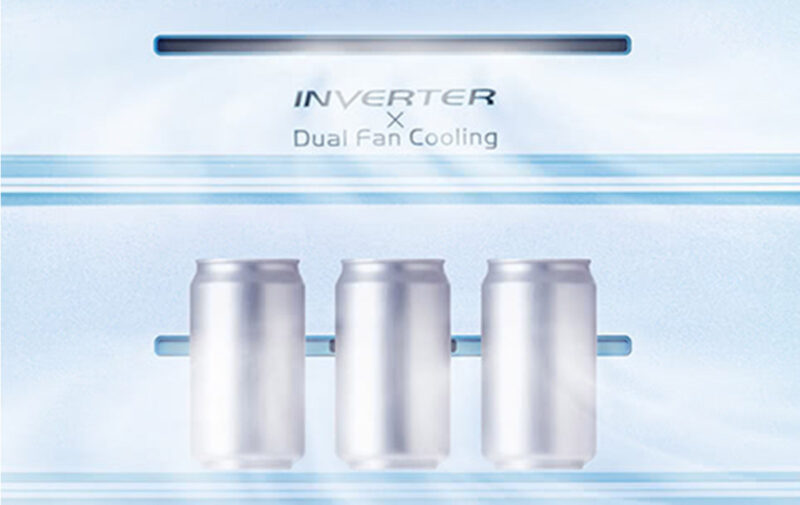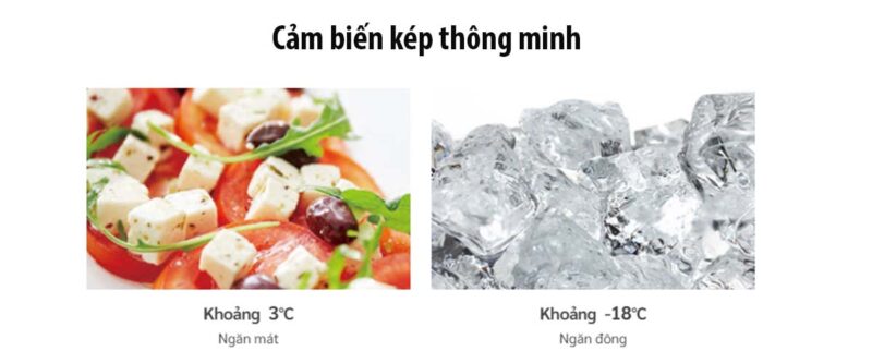 - Hệ thống làm lạnh quạt kép Dual Fan Cooling kết hợp với máy nén Inverter và cảm biến nhiệt Eco mang đến khả năng làm lạnh nhanh, đồng đều cho cả ngăn đông và ngăn mát, đồng thời tiết kiệm năng lượng tối ưu. Chế độ Quick Cooling giúp làm lạnh nhanh hơn 27%, bảo quản thực phẩm luôn tươi ngon.