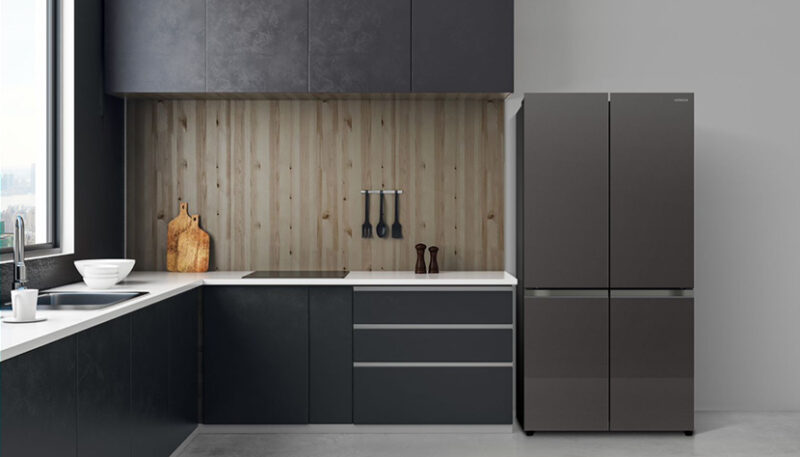 Tủ lạnh Hitachi Inverter 569 lít R-WB640PGV1(GMG) sở hữu thiết kế nhiều cửa với tay nắm phẳng tinh tế, cửa kính sang trọng, mang đến vẻ hiện đại và hài hòa cho không gian bếp. Ngăn lạnh được đặt phía trên thuận tiện cho nhu cầu sử dụng thường xuyên, trong khi dung tích 569 lít đáp ứng nhu cầu lưu trữ thực phẩm lớn cho gia đình 4 – 5 người hoặc hơn.