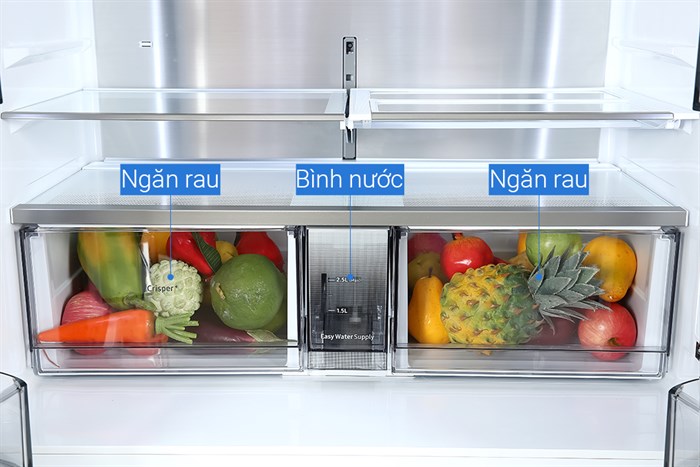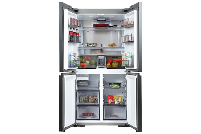 - Kiểu tủ lạnh: Multi doors, thiết kế 4 cửa hiện đại, phân chia ngăn khoa học