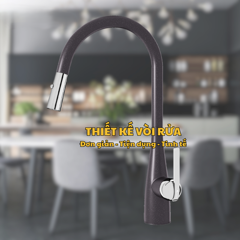 - Nhờ công nghệ mạ PVD vân đá cao cấp, bề mặt vòi có khả năng chống bám vân tay, hạn chế trầy xước và luôn giữ được độ sáng bóng bền lâu. Điều này không chỉ nâng cao giá trị thẩm mỹ mà còn giúp người dùng dễ dàng lau chùi, giữ cho không gian bếp luôn sạch sẽ, sang trọng.