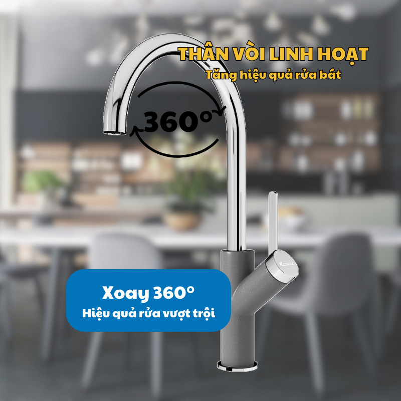 - Thân vòi xoay 360° mở rộng phạm vi tiếp cận